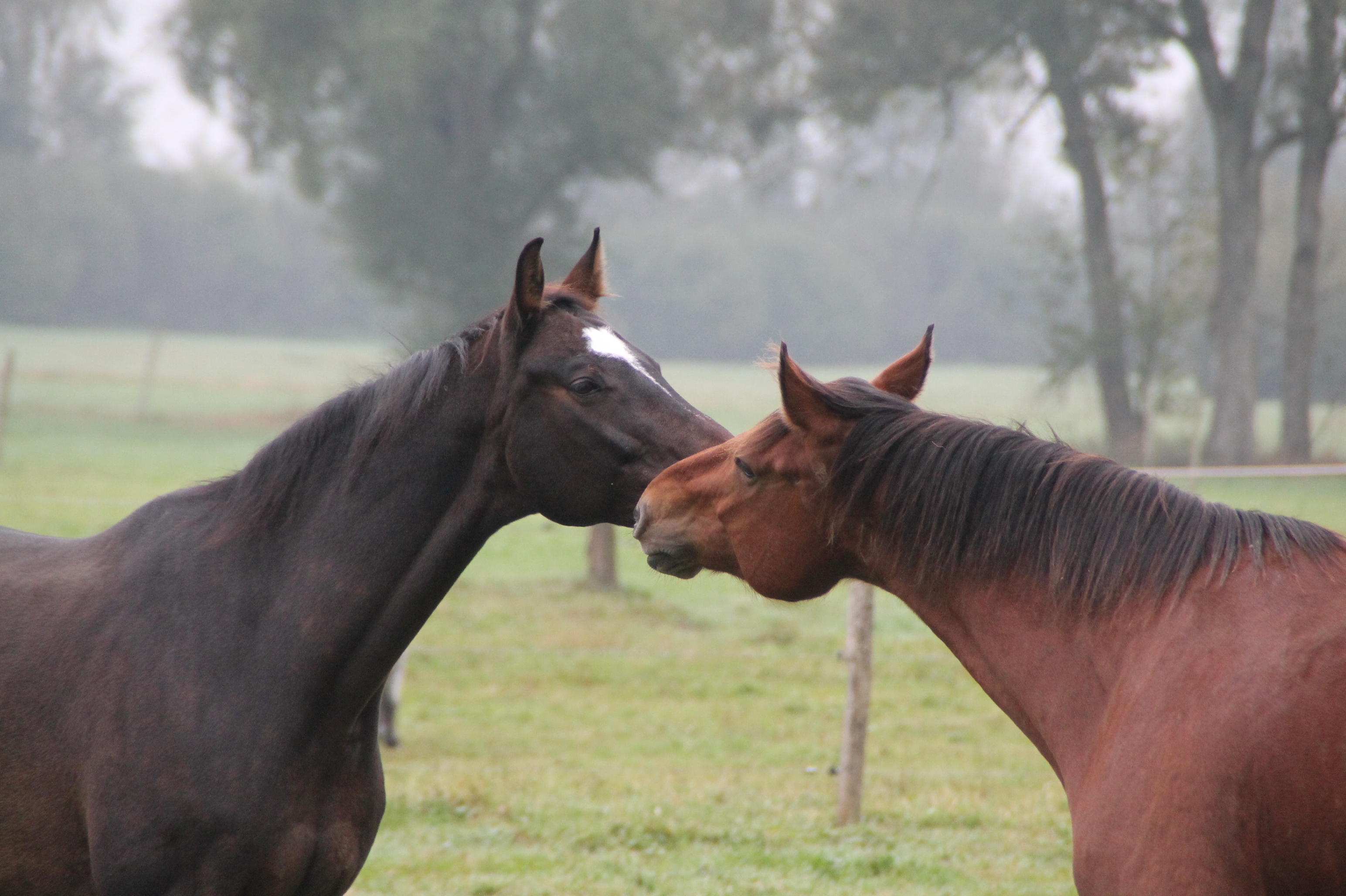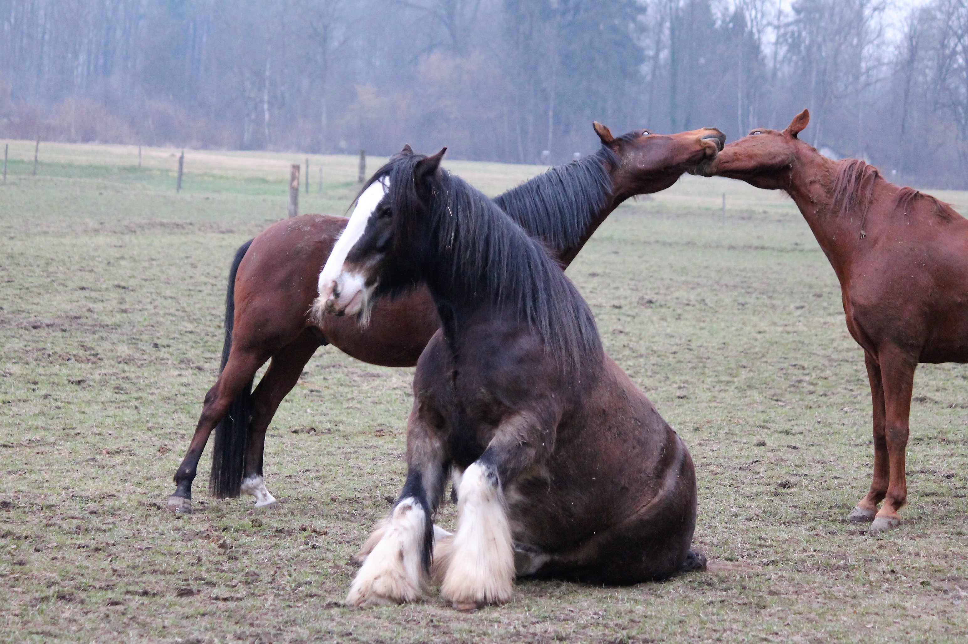 Die Neuzuzügler werden bei uns zuerst auf einen Nachbarpaddock mit Sicht- und „Riech“-kontakt gestellt. Nach einer individuellen Kennenlernphase, geht’s dann in die Gruppe. Ein Neuzuzügler der in den Offenstall geht, bekommt bei uns erst eine Nachtbox. Wenn er gut in der ganzen Gruppe integriert ist, darf er in den Offenstall umziehen. So vermeiden wir Futter- und Liegestress bei allen Beteiligten.