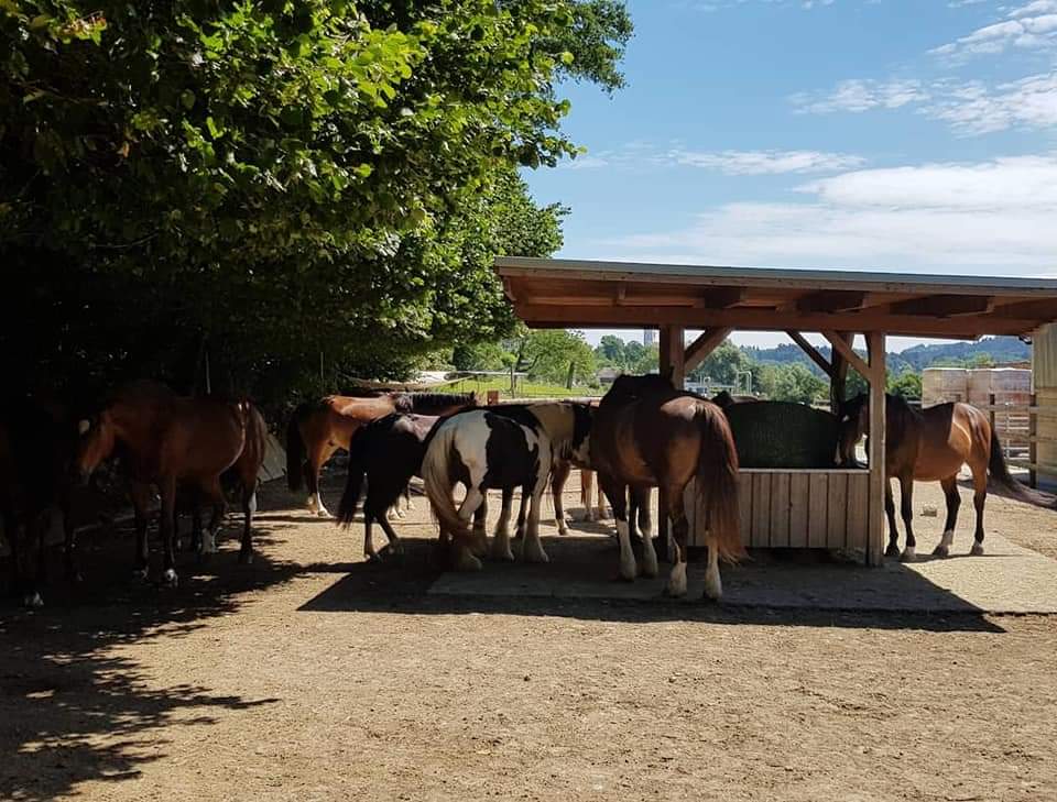 Wir betreiben eine Pferdepension für 24 Tiere. Wir bieten artgerechte Gruppenhaltung in Form von Offenstall und Nachtbox an. Tagsüber Gruppenhaltung in gemischter Herde. Wir versuchen im Rahmen unserer Möglichkeiten eine Naturnahe Pferdehaltung zu gewährleisten. Mit Todholzhecken als Windschutz, verschiedenen Knabbersträuchern und Hölzern als Kratz- und Strukturelementen. Wir schaffen eine vielseitige Umgebung um Platz zum Spielen und Pferd zu sein zu ermöglichen.
